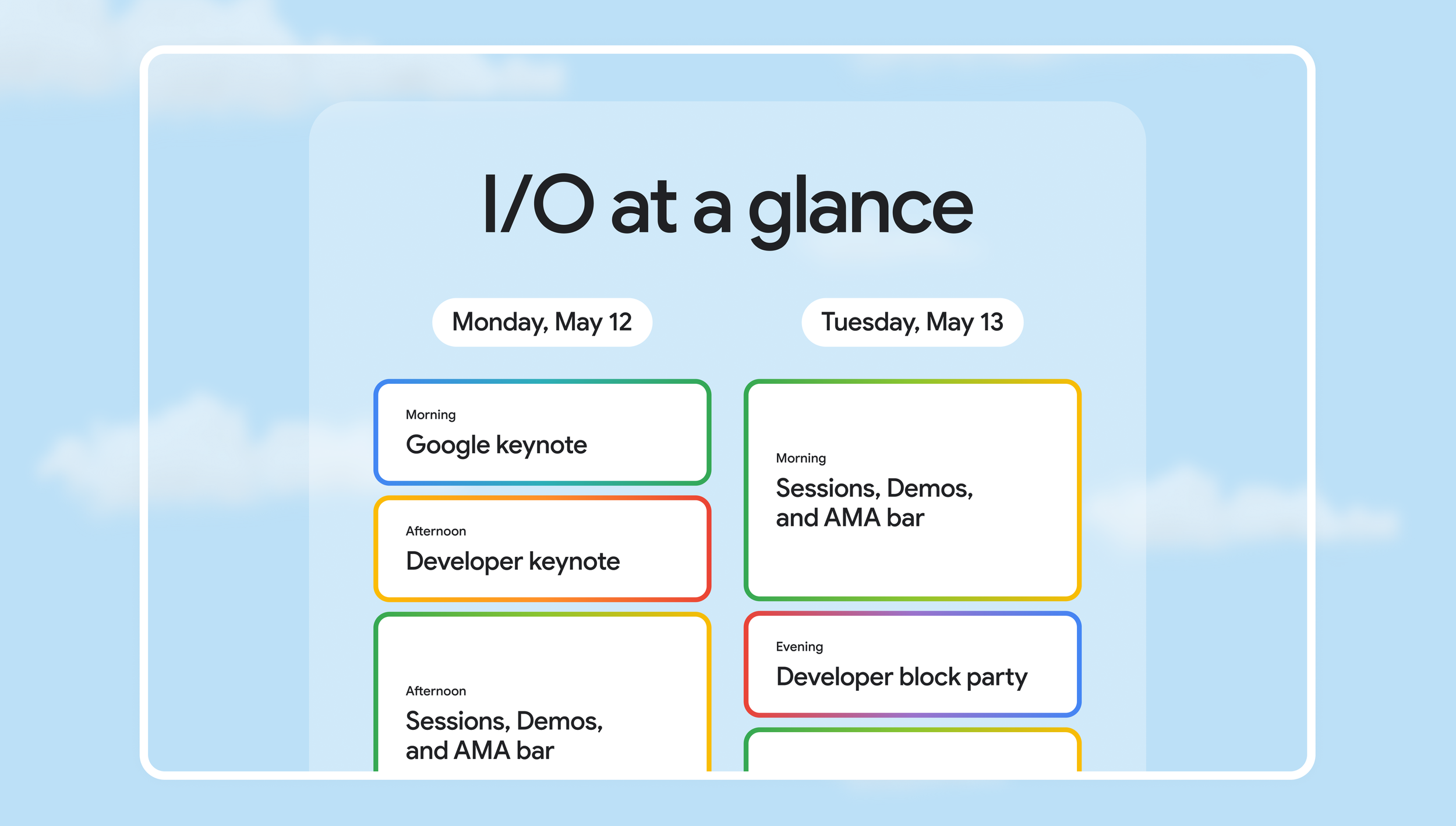 Google I/ODigital Experience, Web Design, Event Website Global developer conference showcasing the latest innovations. Partnering with the Events + Experiences team at Google we worked to create a world class digital experience for in-person attendees.